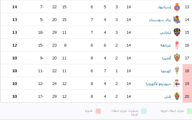 Sport Zone ترتيب الدورى الاسبانى 2015 2014 بعد الجولة ال 14